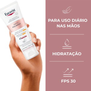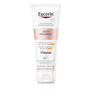 Eucerin Anti-Pigment Creme Clareador de Mãos é um produto ideal para a redução e prevenção de manchas, formulado com Thiamidol, um ativo reconhecido pelos dermatologistas como o mais eficaz e o único comprovado por atuar na causa raiz das manchas. Sua fórmula também contêm Ácido Hialurônico, que reduz as marcas de envelhecimento e hidrata por 24 horas, e FPS 30, que previne manchas causadas pela radiação solar.