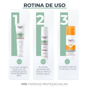 Eucerin Dermo Pure Gel de Limpeza Facial Concentrado limpa a pele de forma profunda, desenvolvido com 2% de Ácido Salicílico, que controla a oleosidade e auxilia no combate de cravos e espinhas. Sua fórmula também inclui Complexo de Hidroxiácidos, que combatem marcas escuras pós-acne. Com resultados visíveis em apenas 7 dias, tem textura em gel que promove uma limpeza profunda. É ideal para peles oleosas e acneicas.NART: 63833-03300-00