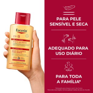 Eucerin ph5 Óleo de Limpeza para Banho é ideal para uma limpeza suave e conforto da pele sensível e seca. Desenvolvido com Dexpantenol e rico em óleos naturais, equilibra o pH, reforça as defesas naturais da pele e previne seu ressecamento. Uso corporal e diário.NART: 63121-03400-32